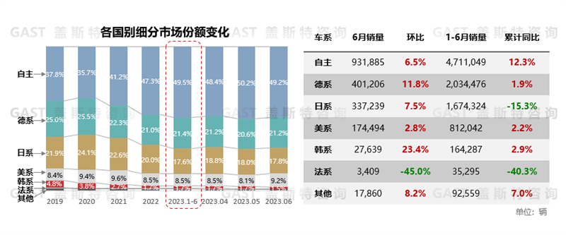 上半年車市特征二:自主品牌乘用車市場(chǎng)份額占比近半