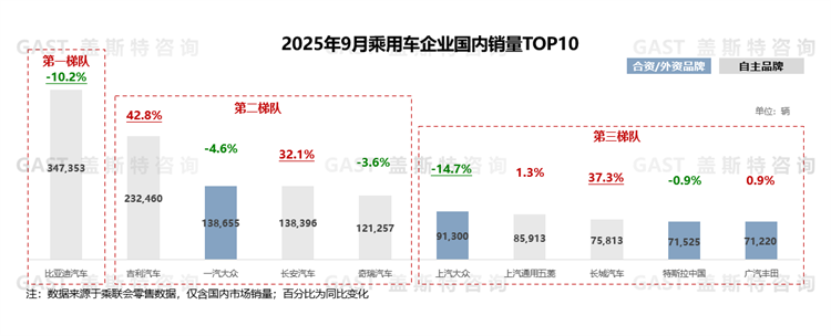 乘用車企業(yè)國內(nèi)銷量TOP10:自主品牌占據(jù)6席