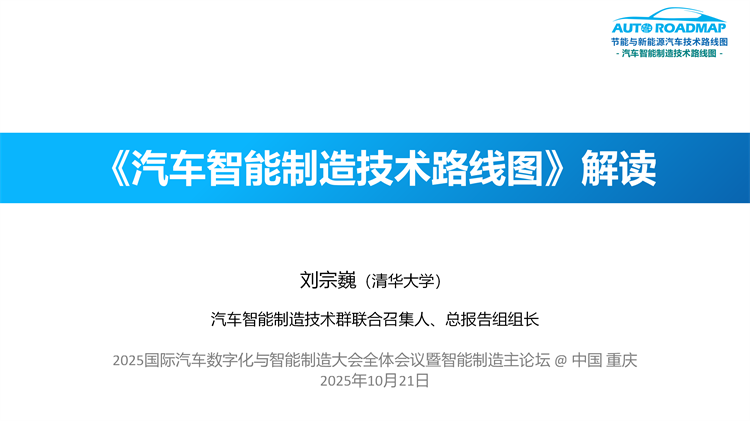 本篇為《汽車(chē)智能制造技術(shù)路線圖》的總體解讀。文章核心內(nèi)容源自智能制造技術(shù)群聯(lián)合召集人、總報(bào)告組組長(zhǎng)、清華大學(xué)(車(chē)輛學(xué)院)汽車(chē)產(chǎn)業(yè)與技術(shù)戰(zhàn)略研究院院長(zhǎng)助理劉宗巍博士代表智能制造技術(shù)群全體專(zhuān)家在“2025國(guó)際汽車(chē)數(shù)字化與智能制造大會(huì)(ADIM2025)”上圍繞路線圖所作的主旨報(bào)告。