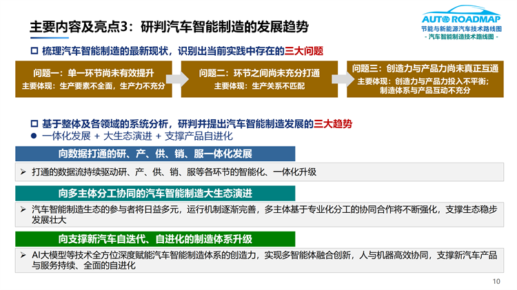 3.梳理汽車(chē)了智能制造的最新現(xiàn)狀,識(shí)別出當(dāng)前實(shí)踐中存在的三大問(wèn)題并對(duì)應(yīng)提出三大趨勢(shì)