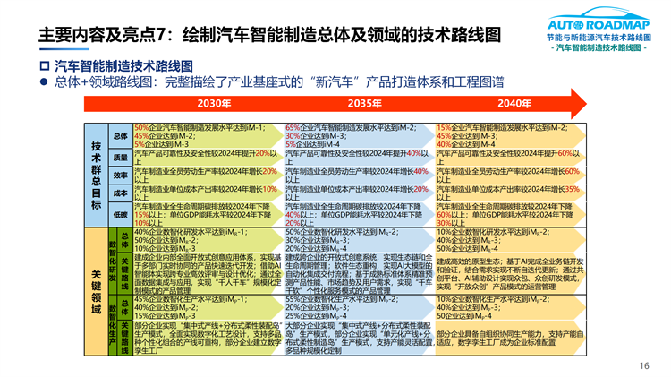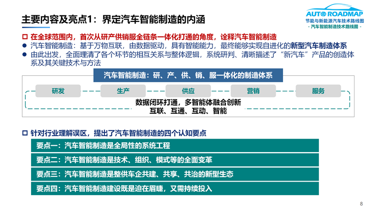 7.完整描繪了具有產(chǎn)業(yè)基座式的“新汽車(chē)”產(chǎn)品打造體系和工程圖譜(即汽車(chē)智能制造總體及分領(lǐng)域的技術(shù)路線圖)